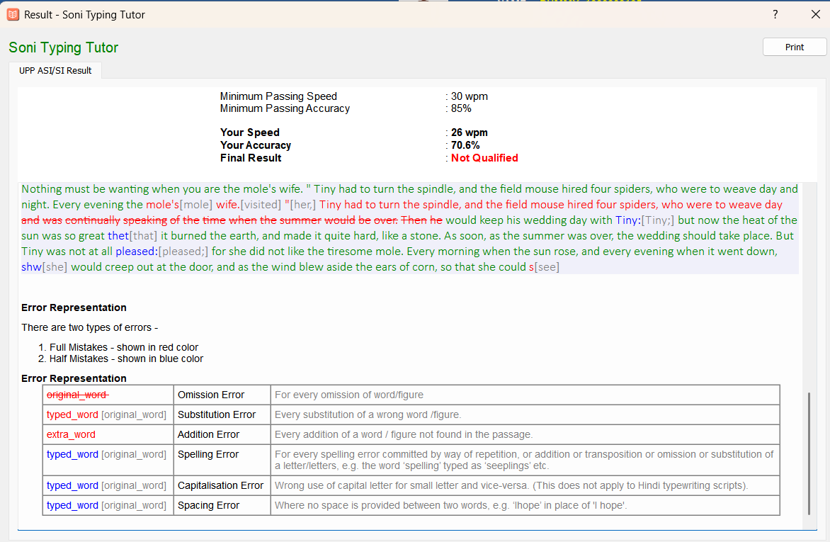 As discussed, the typing test is qualifying in nature, so you must pass it. Therefore, focus on both speed and accuracy. As we know, accuracy is the key, so give special attention to maintaining high accuracy along with good typing speed.